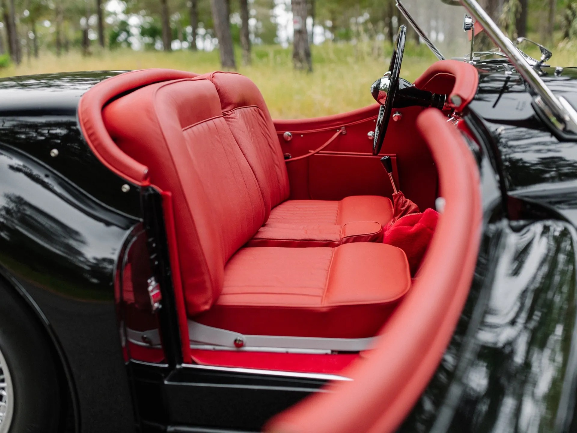But the beauty of the 1954 Jaguar XK 120 Roadster lies not only in its performance but also in its design. Considered one of the finest examples of British craftsmanship, this roadster impresses with its sleek lines, elegant front grille, and striking headlights. In addition, the vehicle, which can be personalized with the iconic bi-color paint options of the period, is considered one of the finest examples of the golden age of automobile design.